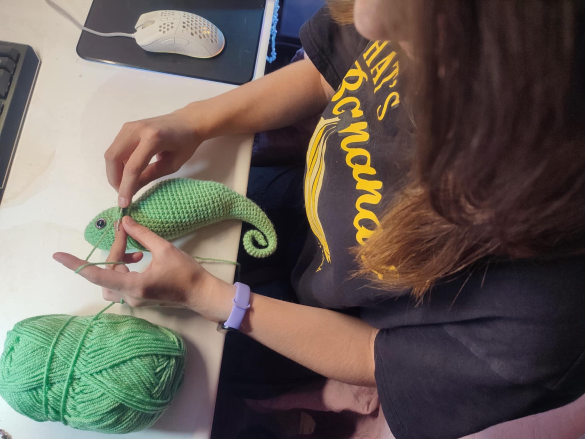 Pierwszy raz wzięłam szydełko do ręki w 2018r, ale szybko zrezygnowałam. Nie wychodziło mi to zbyt ładnie. Wróciłam do nauki szydełkowania dopiero w 2023r, ucząc się sama z YouTube’a – bez sukcesu. Przełom nastąpił gdy trafiłam na lokalne warsztaty z włóczką. Instruktorka pokazała mi podstawy i dała wzór misia – od tego momentu szydełkowanie stało się moją pasją.
